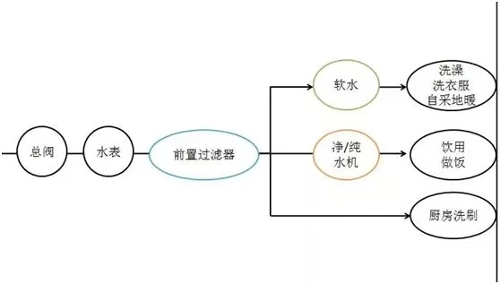 廚房洗刷直接用前置過濾器(qì)處理過的水(shuǐ),不需要接軟水(shuǐ),軟水(shuǐ)比較滑,用來洗菜什麽的可能(néng)洗不幹淨,也會(huì)比較浪費(fèi)。