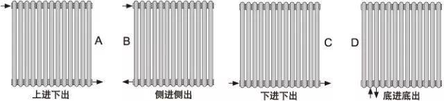 上(shàng)進下(xià)出最有利于水(shuǐ)循環,但是管道鋪設上(shàng)可能(néng)會(huì)有礙于美觀;上(shàng)進下(xià)出、低(dī)進低(dī)出管道鋪設都比較美觀,但是不利于水(shuǐ)循環,暖氣片高(gāo)度不宜過高(gāo)。
